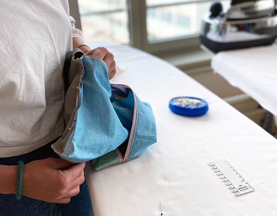 Unsere Werkstattleiterin Lorena Lopez hat ungefähr ein Jahr an der «Freia» getüftelt. Während der Entwicklungsphase hat sie verschiedene Stoff-Qualitäten, das visuell und praktisch gute Mass der Tasche, das Material und die Ausführung der Henkel ausprobiert. Dann musste der Prototyp einige Monate im Alltag bestehen. Diesen Test hat die Tasche bis auf ein paar Kleinigkeiten, die wir danach verbessert haben, mit Bravour bestanden.