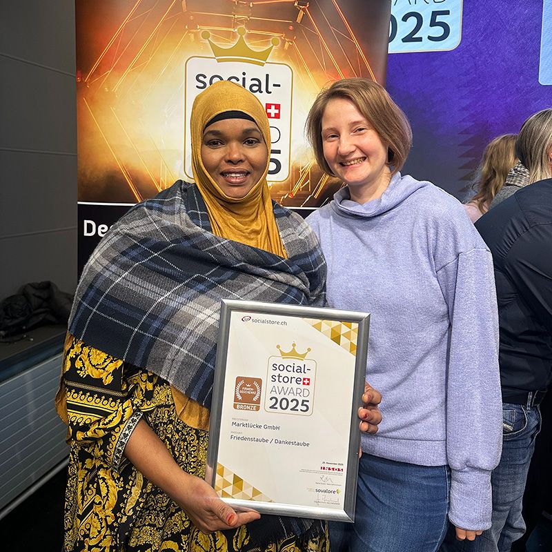Mit unseren Friedenstaube-Aufhängern haben wir uns im Herbst 2025 für den Socialstore Award beworben und durften bei der Preisverleihung im November den 3. Platz in der Kategorie Kundengeschenk entgegennehmen.