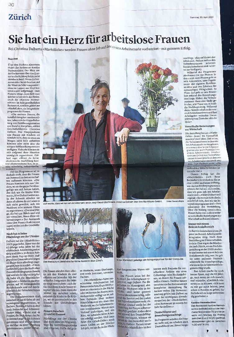 - Limmattaler Zeitung, Ein Herz für arbeitslose Frauen, April 2022