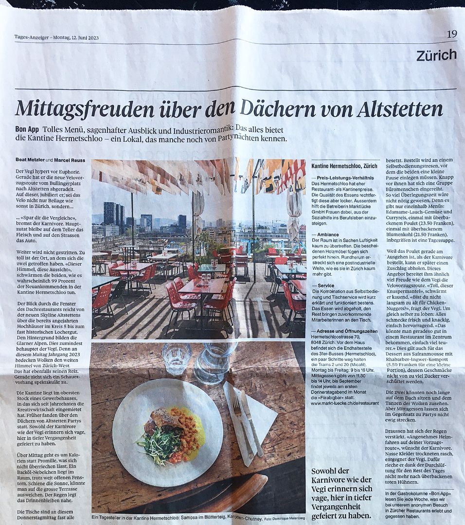 - Tages-Anzeiger, Restaurant Kantine Hermetschloo, Juni 2023
