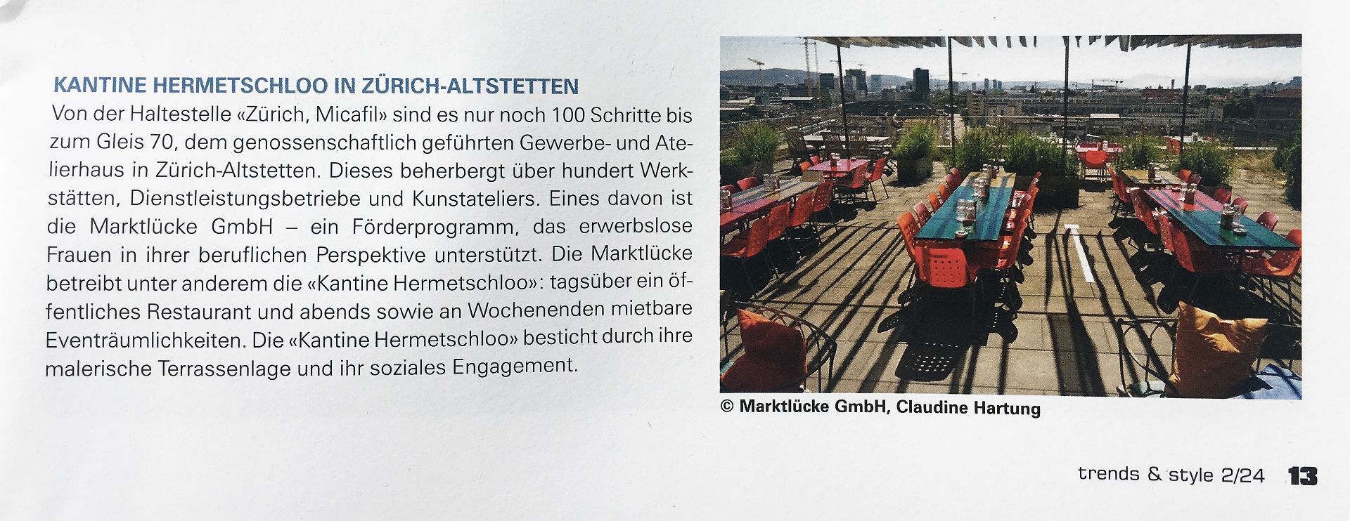 - trends & style, Restaurant Kantine Hermetschloo, April 2024